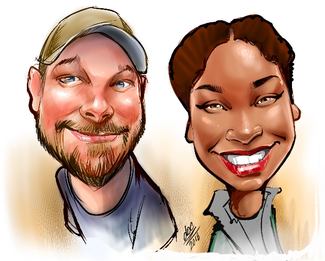 Digital caricature artists are great for trade show, conventions & corporate events and product promotions. We also draw live digital caricatures at weddings, birthday parties, reunions and many more kinds of personal or corporate gatherings. Everyone in all age groups enjoy digital caricatures. We draw them on the sport and send them to the guests electronically. We can also print the digital caricatures on the spot and give them to the clients in plastic sleeves. These make great avatars and social media posts.