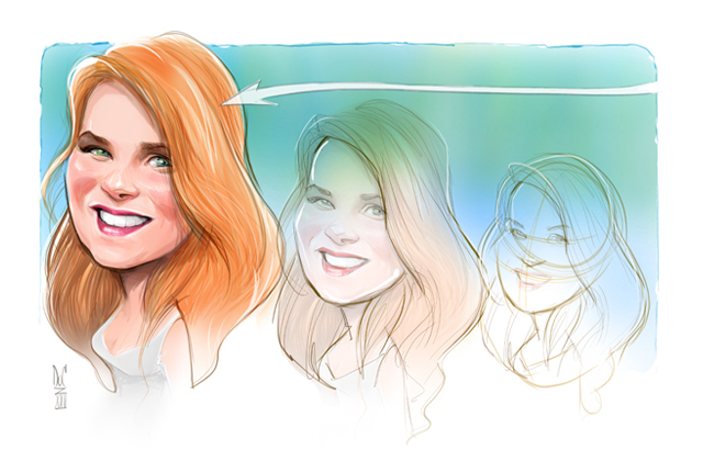 We start with a sketch of the people or subject matter and send you a draft of the caricature illustration for approval and feedback.