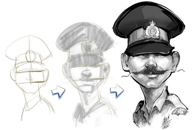 We start with a sketch of the people or subject matter and send you a draft of the caricature illustration for approval and feedback.
