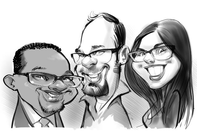 Digital caricature artists are great for trade show, conventions & corporate events and product promotions. We also draw live digital caricatures at weddings, birthday parties, reunions and many more kinds of personal or corporate gatherings. Everyone in all age groups enjoy digital caricatures. We draw them on the sport and send them to the guests electronically. We can also print the digital caricatures on the spot and give them to the clients in plastic sleeves. These make great avatars and social media posts.