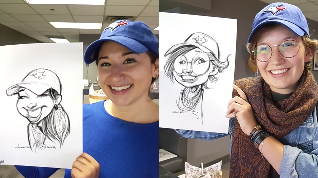 Other than being a solid form of entertainment for all age groups, the attendees take an original piece of art with them. Our live party caricatures are often framed and remain in offices and homes for years. Impress your guests by hiring us to draw them at your function, event or party. We draw live caricatures in all major cities and smaller towns across Canada. Hundreds of companies and organizations have hired us to draw live caricature sketches at their corporate functions, picnics or galas. Our traditional caricature clients have been using our services since 1991.